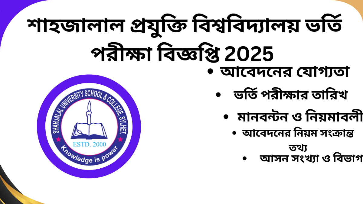 শাহজালাল প্রযুক্তি বিশ্ববিদ্যালয় ভর্তি বিজ্ঞপ্তি 2025
