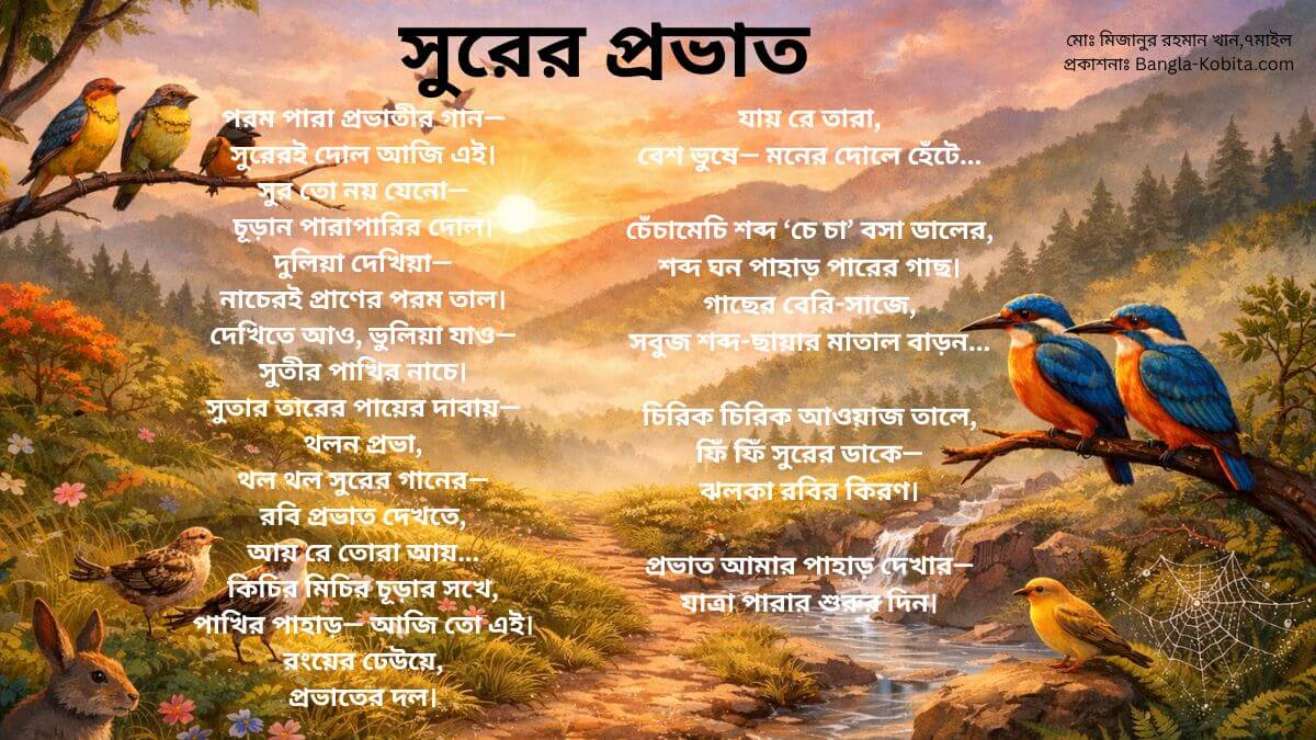ভোরের প্রকৃতি নিয়ে সবুজ পাহাড়, সূর্যোদয় ও পাখির কিচির মিচির শব্দে অনুপ্রাণিত বাংলা কবিতা “সুরের প্রভাত”